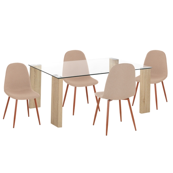 ΣΕΤ ΤΡΑΠΕΖΑΡΙΑΣ 5ΤΜΧ LEOMOR HM21270.01 ΤΡΑΠΕΖΙ & 4 ΚΑΡΕΚΛΕΣ – ΜΠΕΖ ΥΦΑΣΜΑ – HM21270.01