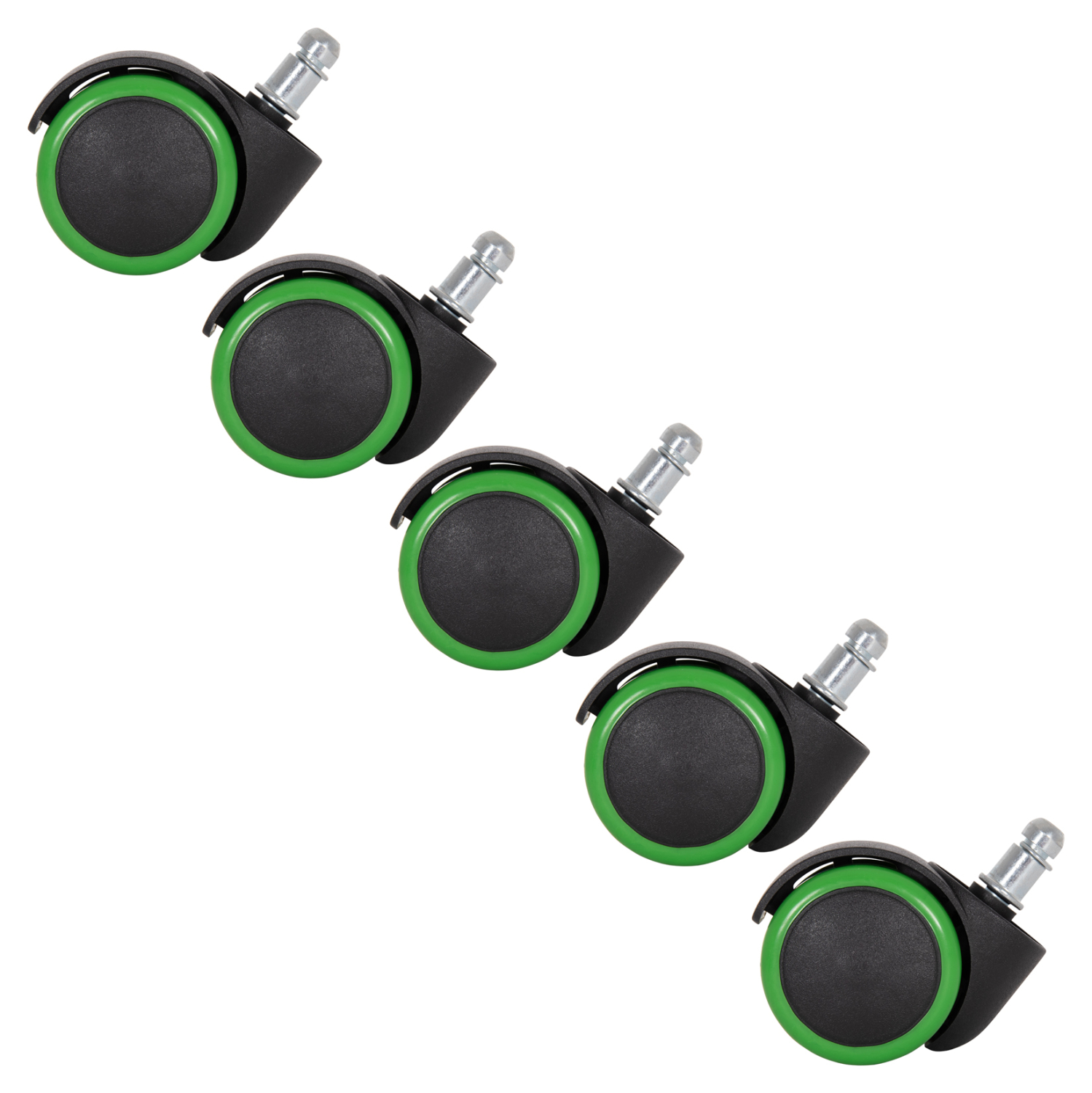 Ανταλλακτικά ροδάκια για καρέκλες γραφείου HM1203 σε μαύρο χρώμα με πράσινη ρίγα, σε σετ 5 τεμαχίων.