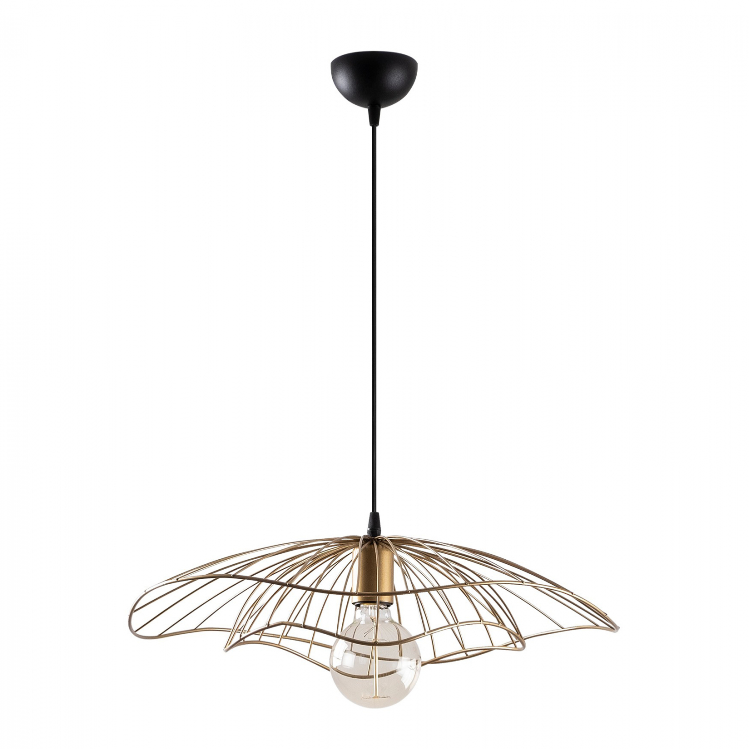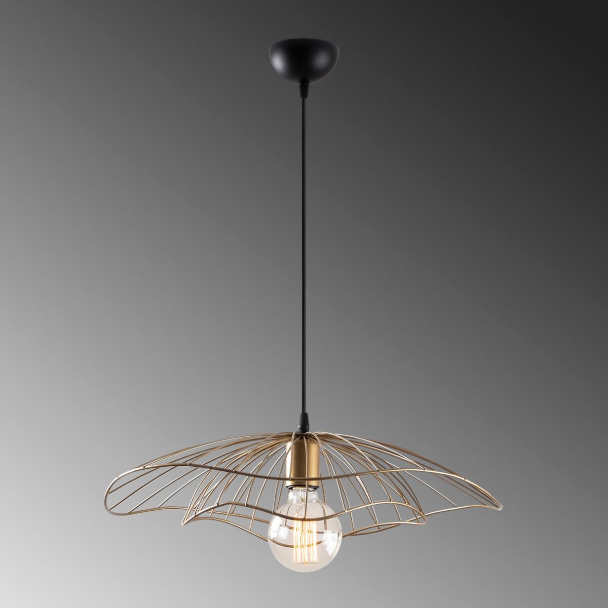 Μοντέρνο κρεμαστό φωτιστικό οροφής, μονόφωτο μεταλλικό σε μαύρη με χρυσή οξυντέ απόχρωση.