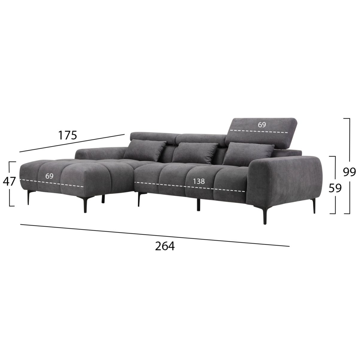 ΚΑΝΑΠΕΣ ΑΡΙΣΤΕΡΗ ΓΩΝΙΑ DIVYA HM3267.02L ΣΥΝΘ.SUEDE ΓΚΡΙ 264x175x99Υεκ. – HM3267.02L