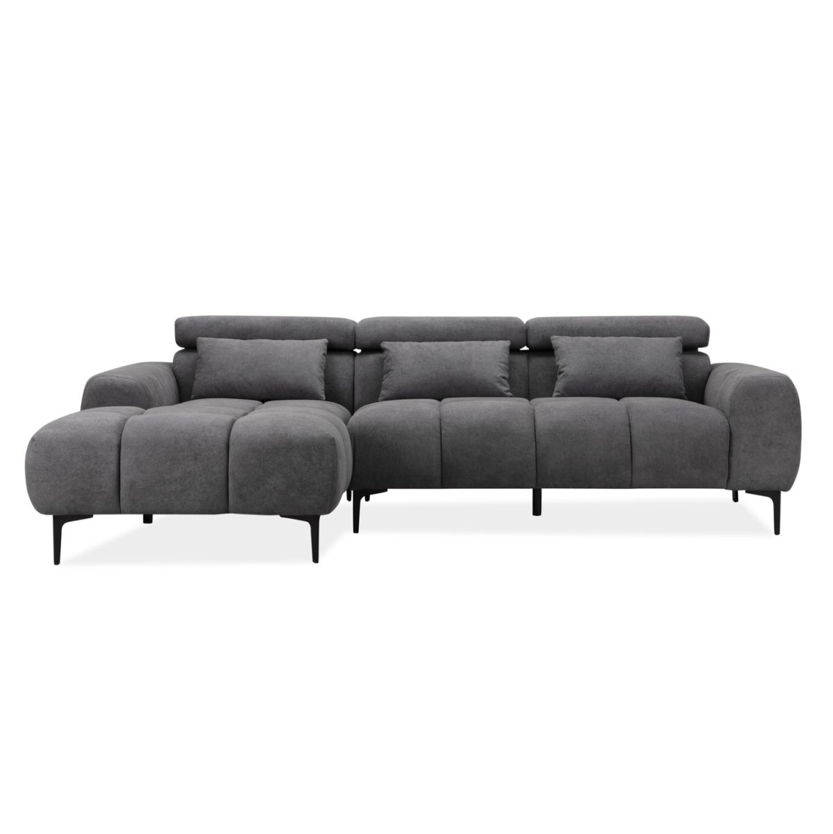 Σας παρουσιάζουμε τον DIVYA. Έναν ολοκαίνουργιο γωνιακό καναπέ (αριστερή γωνία) επενδυμένο με εξαιρετικής ποιότητας συνθετικό ύφασμα Suede σε ΓΚΡΙ χρώμα. Ο καναπές διαθέτει ψηλά μεταλλικά πόδια σε μαύρο χρώμα και κάθισμα με pocket springs σε συνδυασμό με αφρώδη υλικά. Η άνεση που προσφέρει επιτείνεται κι από το γεγονός ότι τα μαξιλάρια κεφαλής στο επάνω μέρος της πλάτης έχουν ρυθμιζόμενη κλίση, ενώ το σετ συμπληρώνουν και 3 μικρά διακοσμητικά μαξιλάρια.