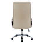 Διευθυντική καρέκλα γραφείου “SHASHI” σε εκρού χρώμα. Μια «πλούσια» καρέκλα γραφείου με ψηλά επίπεδα μπράτσα σε σχήμα παραλληλόγραμμου, επενδυμένα με μια λεπτή στρώση αφρολέξ σε PU δέρμα. Η πλάτη είναι ανατομική και ψηλή με διπλό «μαξιλάρι» από αφρώδη υλικά για άνεση κατά την χρήση και υποστηρίζει ολόκληρο τον κορμό σας, ενώ είναι επενδυμένη με υψηλής ποιότητας PU δέρμα , όπως επίσης και το φαρδύ και αναπαυτικό κάθισμα με την αναπαυτική επιφάνεια επίσης με εξτρά «μαξιλάρι». Η βάση είναι inox σε σχήμα «αστέρι».