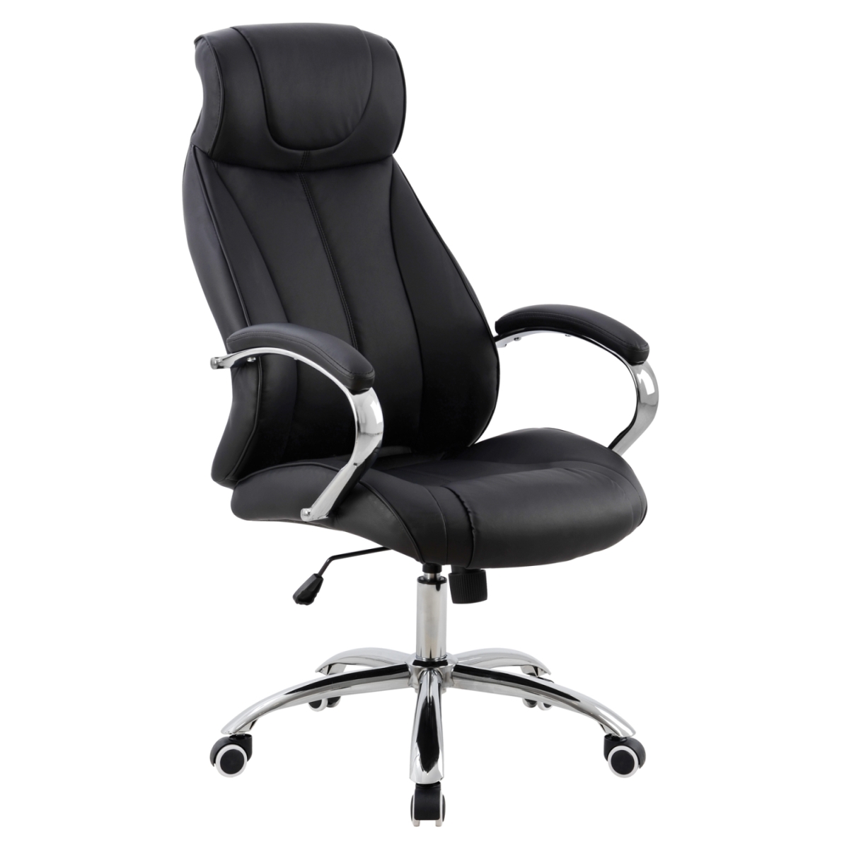 Καρέκλα γραφείου διευθυντική με μπράτσα και ανάκλιση από υψηλής ποιότητας PU σε μαύρο χρώμα και μοναδικό design.