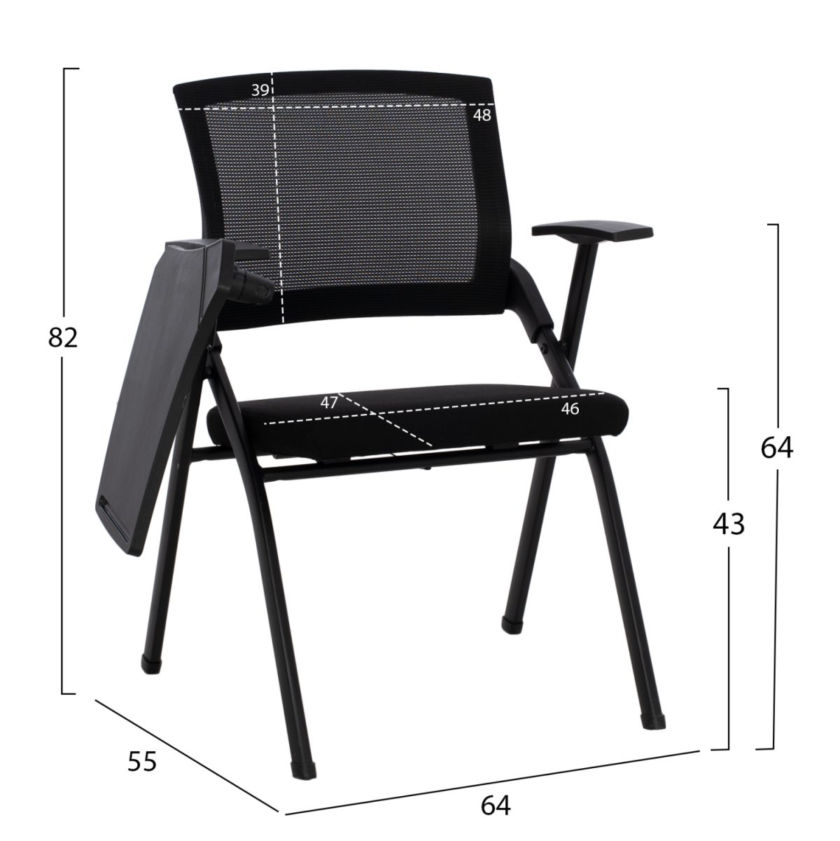 Καρέκλα συνεδρίου με θρανίο αναλόγιο σε μαύρη απόχρωση 64x55x82 εκ.