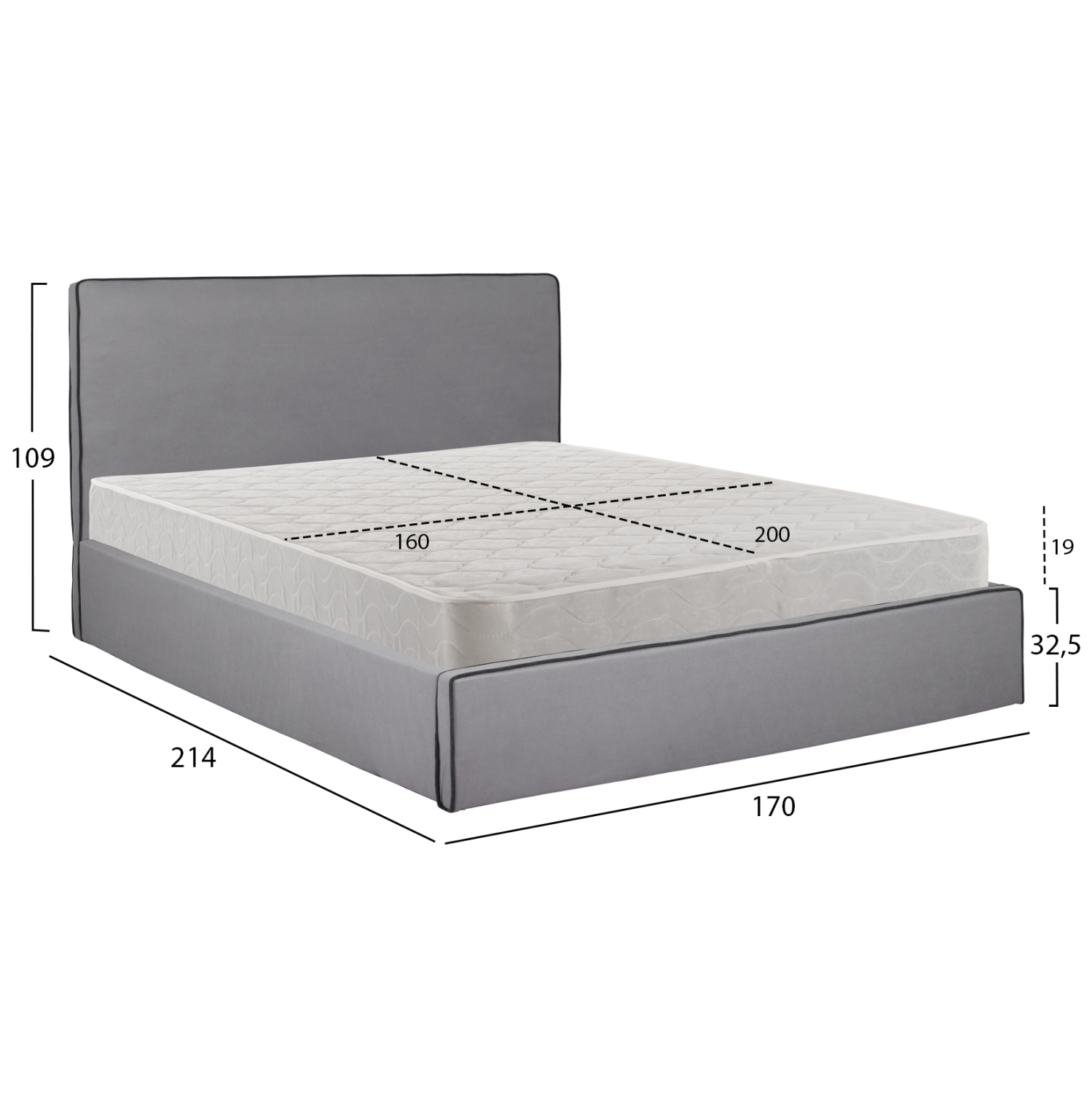 ΚΡΕΒΑΤΙ ΔΙΠΛΟ & ΣΤΡΩΜΑ ALLIE HM21273.01 ΓΚΡΙ ΥΦΑΣΜΑ ΜΕ ΑΠΟΘ.ΧΩΡΟ–ΓΙΑ 160×200εκ – HM21273.01