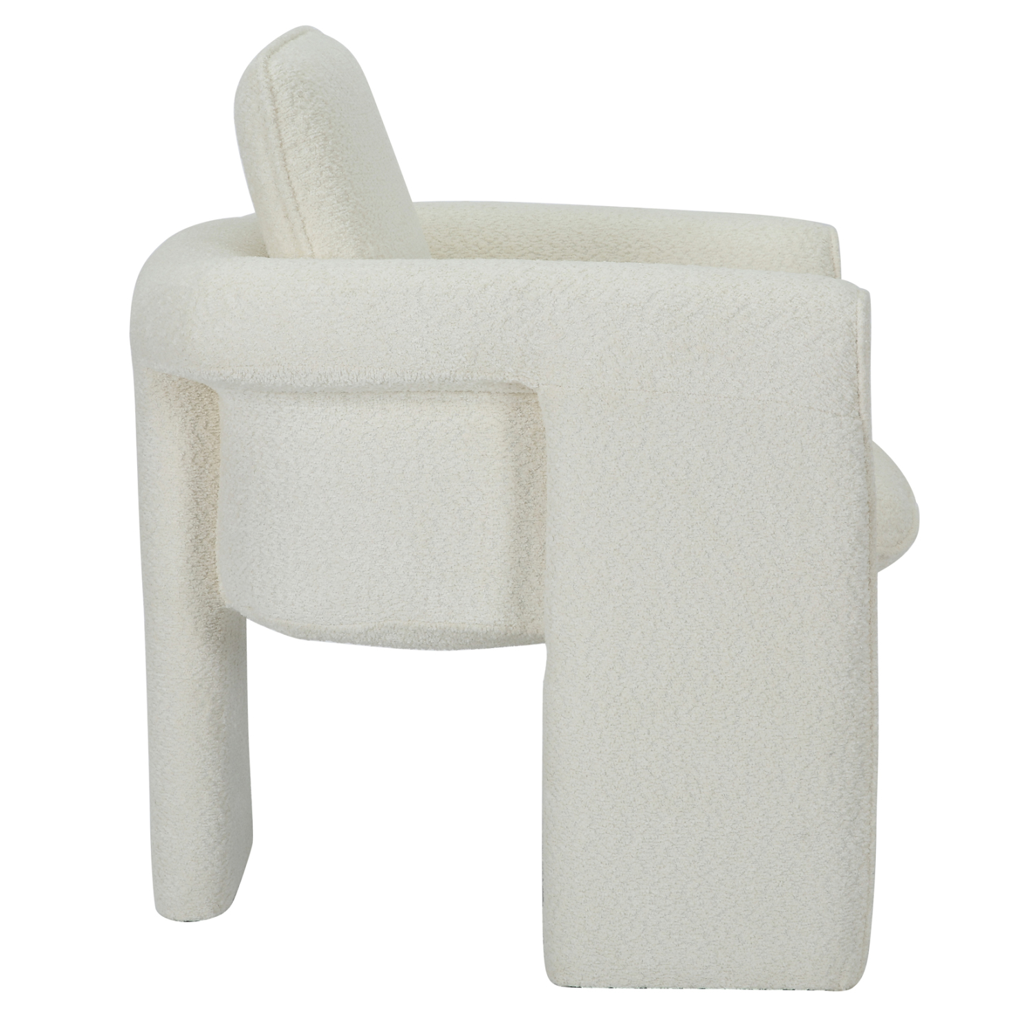 Ο σκελετός της πολυθρόνας είναι μεταλλικός με ηλεκτροστατική βαφή, ενώ ολόκληρη η επένδυση έχει γίνει με μπουκλέ ύφασμα εξαιρετικής ποιότητας και υφής. Μπουκλέ λέγεται οποιοδήποτε ύφασμα που έχει κόμπο-μπούκλα στην ύφανσή του. Κατασκευάζεται από σχεδόν όλες τις πρώτες ύλες (αν και συνήθως είναι συνθετικό) με ειδικές κλωστές με κόμπους ή πολύ στριμμένα νήματα, έτσι ώστε να έχει σγουρή επιφάνεια. Δεν τσαλακώνει και μπορεί να είναι μονόχρωμο, μελανζέ ,καρώ ή τουιντ.