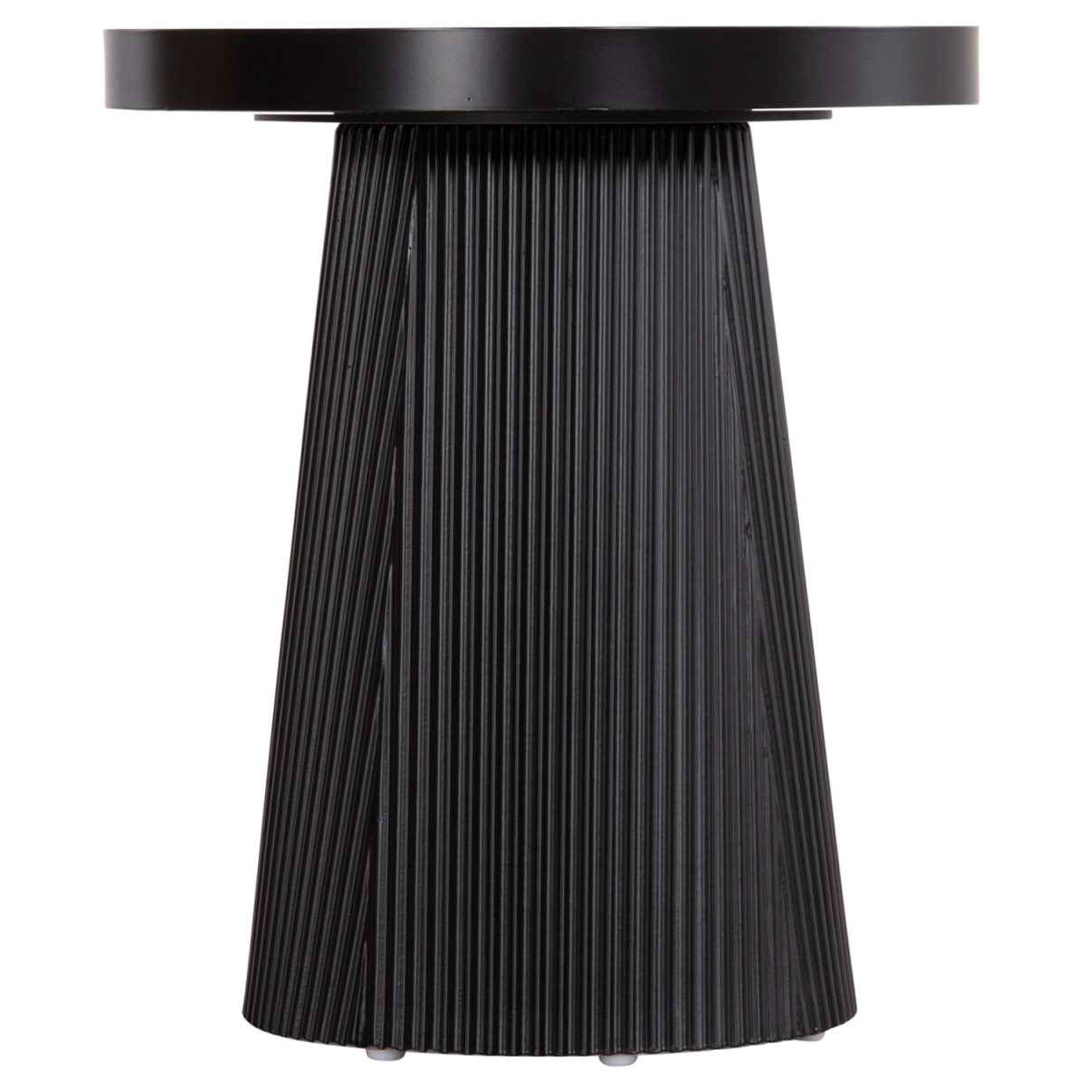Το βοηθητικό τραπέζι DENTON είναι στρογγυλό και σχετικά ψηλό, σε χρώμα ΜΑΥΡΟ. Η επιφάνειά του είναι από MDF σε χρωματισμό ΦΥΣΙΚΟΥ ΞΥΛΟΥ μονταρισμένη σε έναν μεταλλικό δίσκο με υπερυψωμένη περίμετρο, ενώ η βάση του είναι κωνική κατασκευασμένη εξολοκλήρου από MDF, με όμορφες πτυχώσεις. Ιδανικό για πληθώρα χώρων χάρη στην πρακτικότητά του.