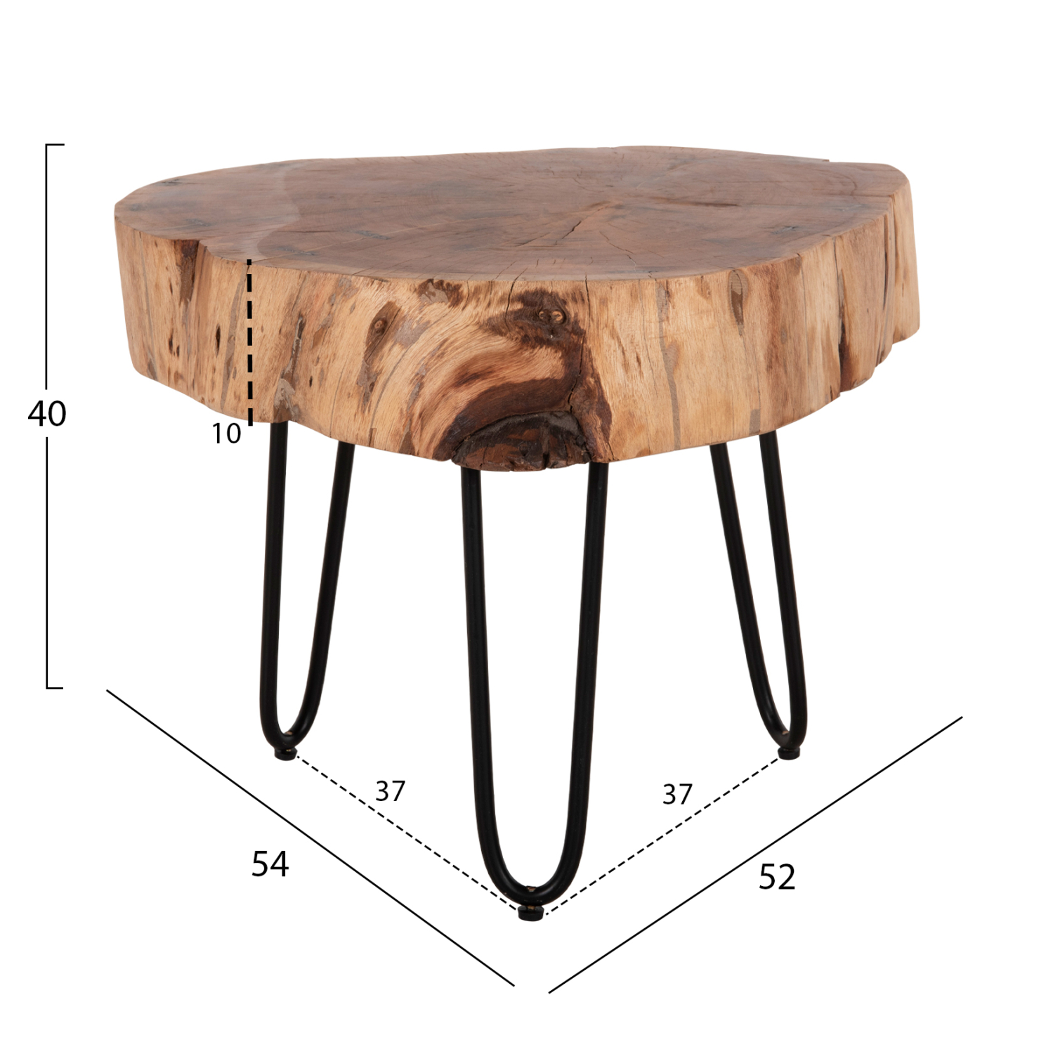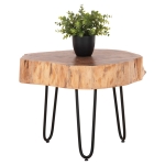 ΗΜ8779.11 τραπεζάκι σαλονιού—– Το τρίποδο τραπεζάκι ΗΜ8779.11 είναι ο ορισμός του ρουστίκ στυλ στο έπιπλο. Το ξύλο είναι στο φυσικό του χρώμα αλλά και στην φυσική του κατάσταση, δηλαδή μια παχιά φέτα από τον κορμό του δέντρου. Τα 3 μαύρα μεταλλικά πόδια ολοκληρώνουν αυτή την πολύ απλή και πρακτική υλοποίηση.