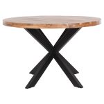 Ανακαλύψτε το μοναδικό χειροποίητο τραπέζι MONTANA SUPERIOR με επιφάνεια από φυσικό μασίφ ξύλο ΑΚΑΚΙΑΣ σε ΦΥΣΙΚΟ χρώμα. To σχήμα είναι στρογγυλό και στηρίζεται σε μαύρα μεταλλικά διπλοχιαστί πόδια. Το μοντέρνο design συναντά την φύση και δίνει μια διαχρονική και ζεστή αίσθηση στον χώρο σας.