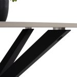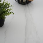 Το χαρακτηριστικό, όμως, αυτού του τραπεζιού είναι η επιφάνεια του. Αυτή είναι κατασκευασμένη από sintered stone (πυροσυσσωματωμένη πέτρα). Βέβαια, δεν έχει καμία σχέση με πέτρα μιας και αυτός είναι ο επιστημονικός του όρος. Το sintered stone, λοιπόν, (πυροσυσσωματωμένη πέτρα) είναι μια μήτρα (καλούπι) ορυκτών, όπως ο γρανίτης, ο χαλαζίας, κομμάτια γυαλιού κτλ., που θερμαίνονται (συντήκονται) για να σχηματίσουν μια στερεή αδιαπέραστη μάζα που οδηγεί σε μια επιφάνεια που δεν μπορεί να χαραχθεί, να γρατσουνιστεί, να καεί ή να λερωθεί. Μάλιστα, ακόμα και στις ιδιότητές του, αυτό το υλικό μοιάζει πάρα πολύ με κεραμικό, ωστόσο είναι ακόμα καλύτερο! Στο ανεκπαίδευτο μάτι, αυτό το υλικό δεν μπορεί να διακριθεί εύκολα από άλλα κεραμικά υλικά και έχει πολλά πλεονεκτήματα όπως: